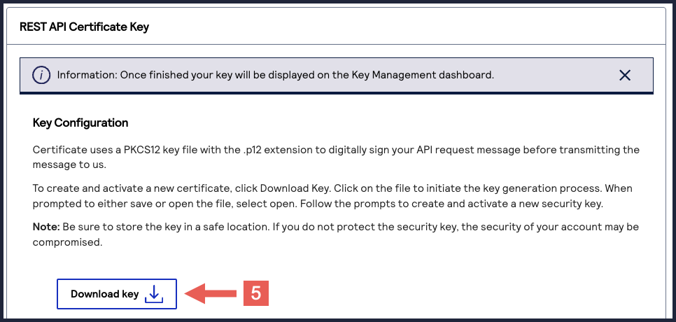 - Verify that the digital signature key you created includes the correct organization ID. You can verify the organization ID by locating it in the response for creating the digital signature key. If the key is configured with the wrong organization ID, send a request for a new digital signature key using the correct organization ID.
